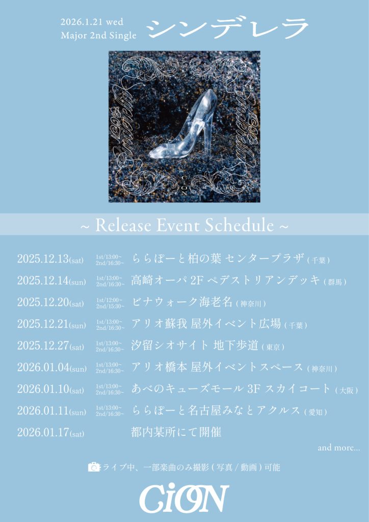 2026年1月21日(水)、CiONメジャー2ndシングル「シンデレラ」のリリースを記念したイベントの開催が決定!